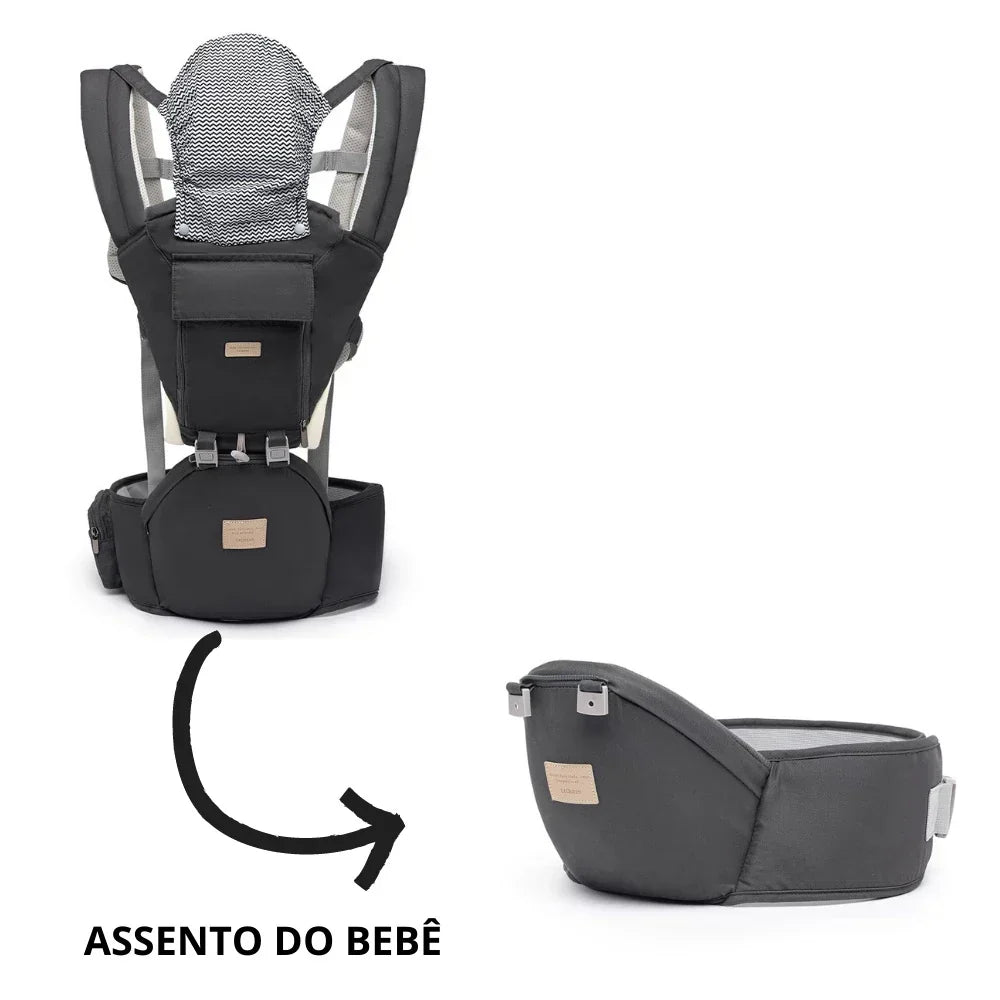 • Sistema Hipseat que distribui o peso do bebê de forma equilibrada, reduzindo a pressão na coluna e nos ombros.